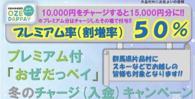令和7年度『プレミアム率最大50%』おぜだっペイ冬のチャージ(入金)キャンペーンについて