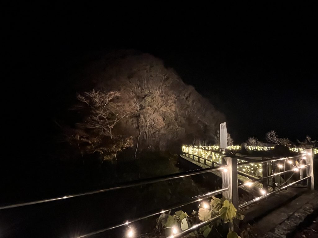 国道沿いの為、車窓からでもお楽しみいただけますが、少し歩いていただくとライトアップとのコラボレーションもお楽しみいただけます。