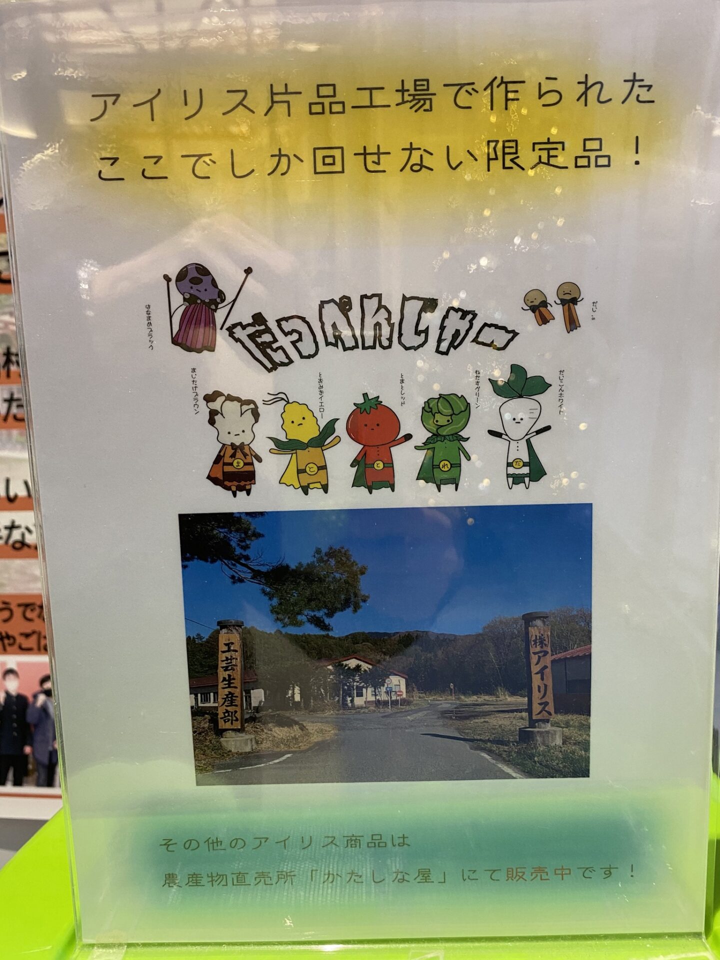 カプセルを開けると、非公認ヒーローの「だっぺんじゃ~」のカワイイ野菜ヒーローたちが片品弁で登場します。