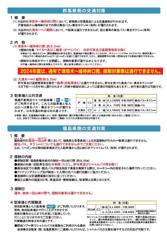 2024年度の津奈木~鳩待峠間の規制期間にご注意ください。