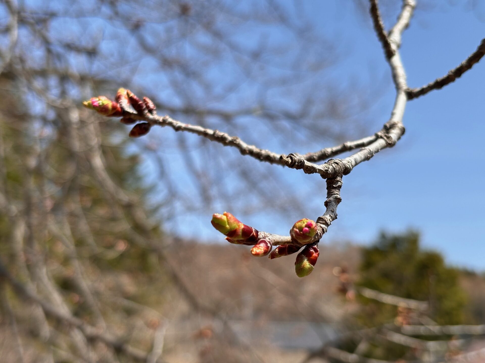 日の当たりの良い南側は、ここ数日の暖かさにより蕾も膨らみ、先端が少し色づき始めている蕾がいくつかありました。開花にはまだ少し時間がかかりそうですが、今週は暖かい予報も出ていますので、今後の天候や気温次第で変わってくるかと思います。随時更新させていただきます。