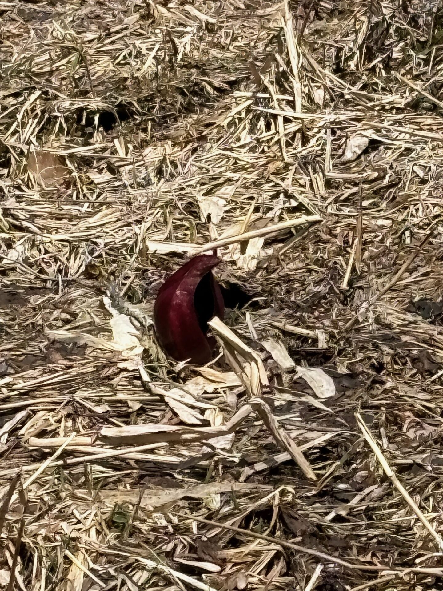 まだ顔を出したばかりのミズバショウが1株見られました。ザゼンソウも顔を出していました。