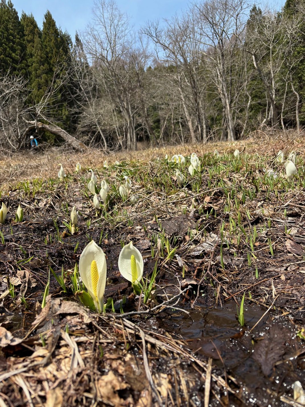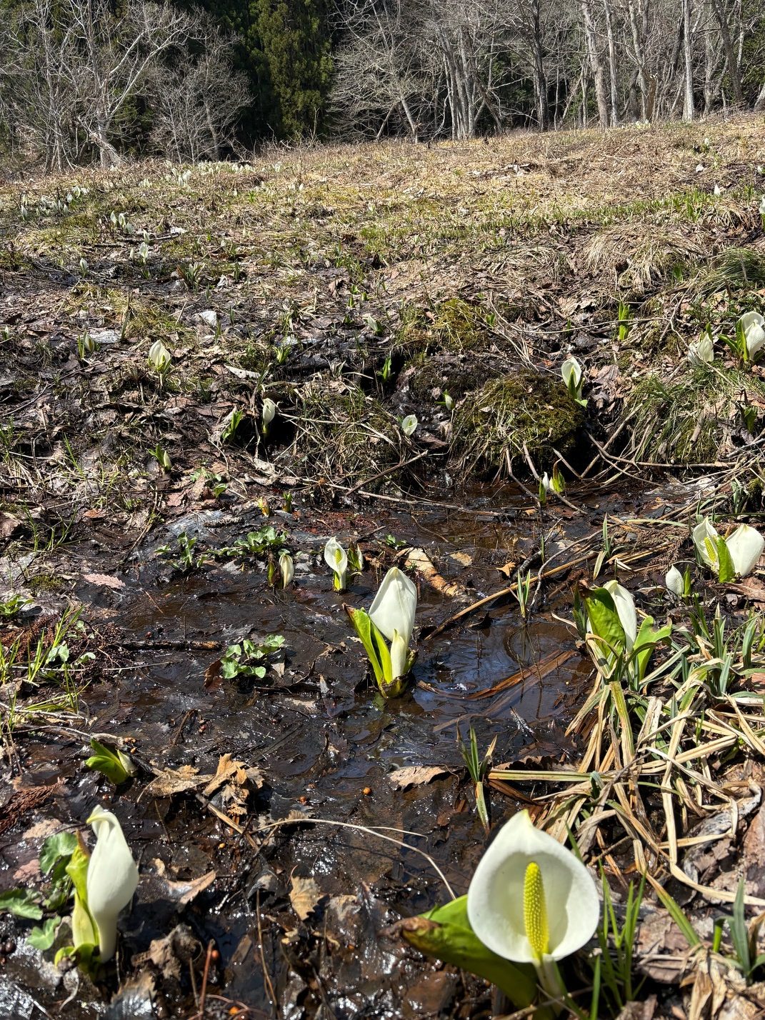 駐車場周辺、湿原の雪もなくなり、かわいいミズバショウが咲き始めています。湿原全体で現在3分咲き程度かと思います。今週は暖かい日が続く予報も出ていますので、随時更新させていただきます。