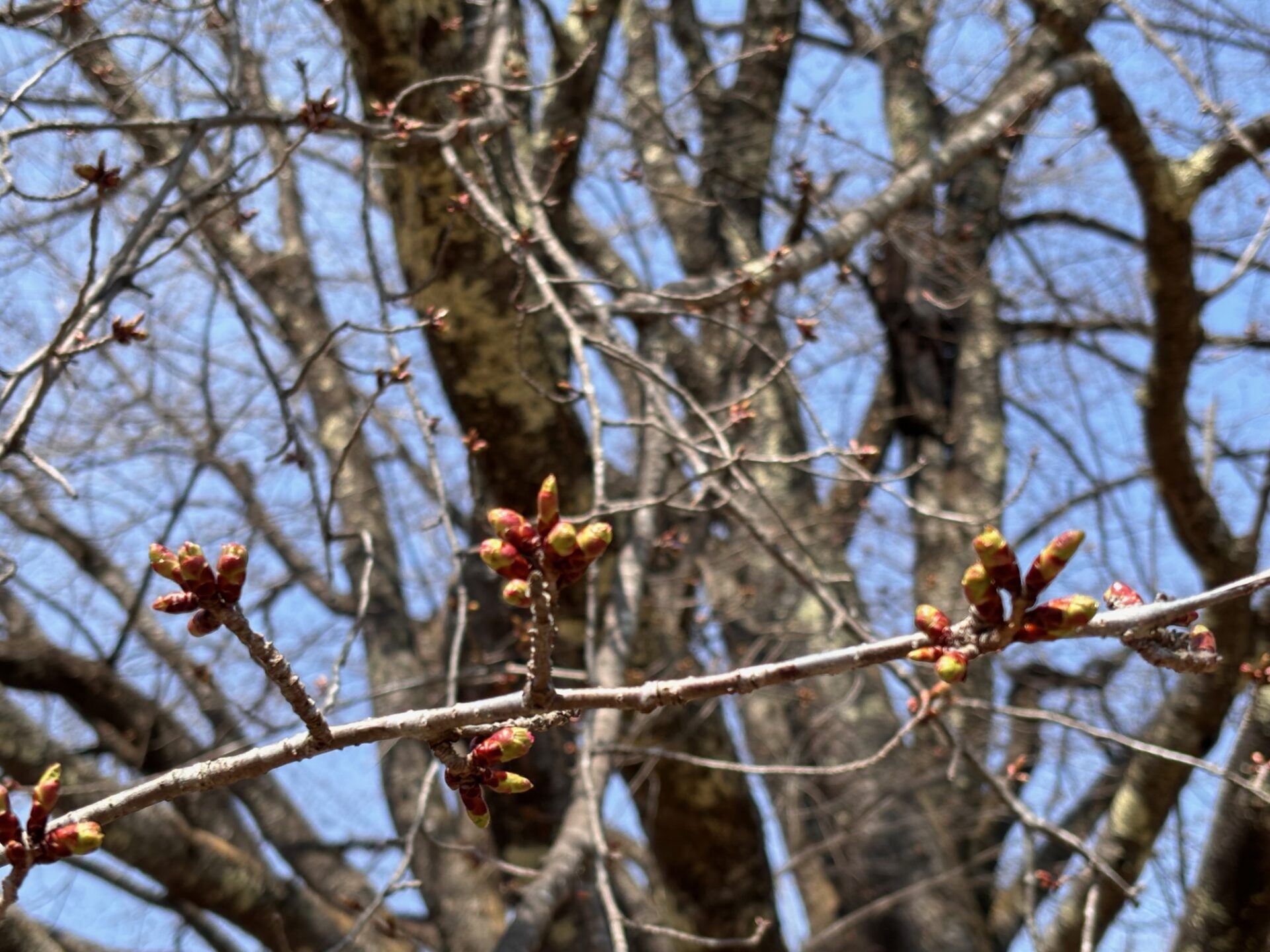 日の当たりの良い南側は、ここ数日の暖かさにより蕾も膨らみ、先端が少し色づき始めている蕾がいくつかありました。開花にはまだ少し時間がかかりそうですが、今週は暖かい予報も出ていますので、今後の天候や気温次第で変わってくるかと思います。随時更新させていただきます。