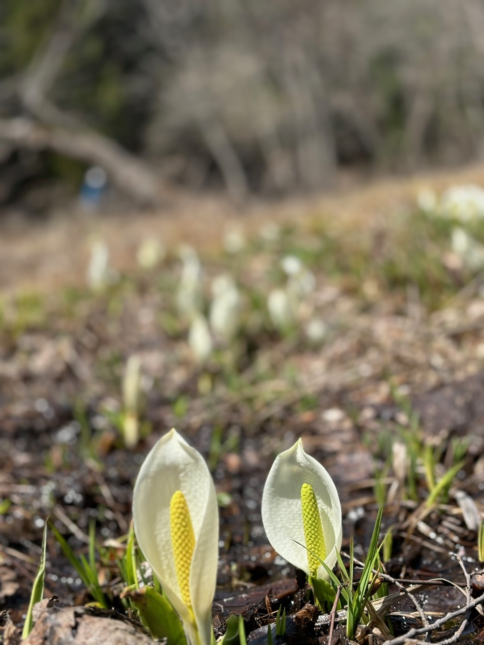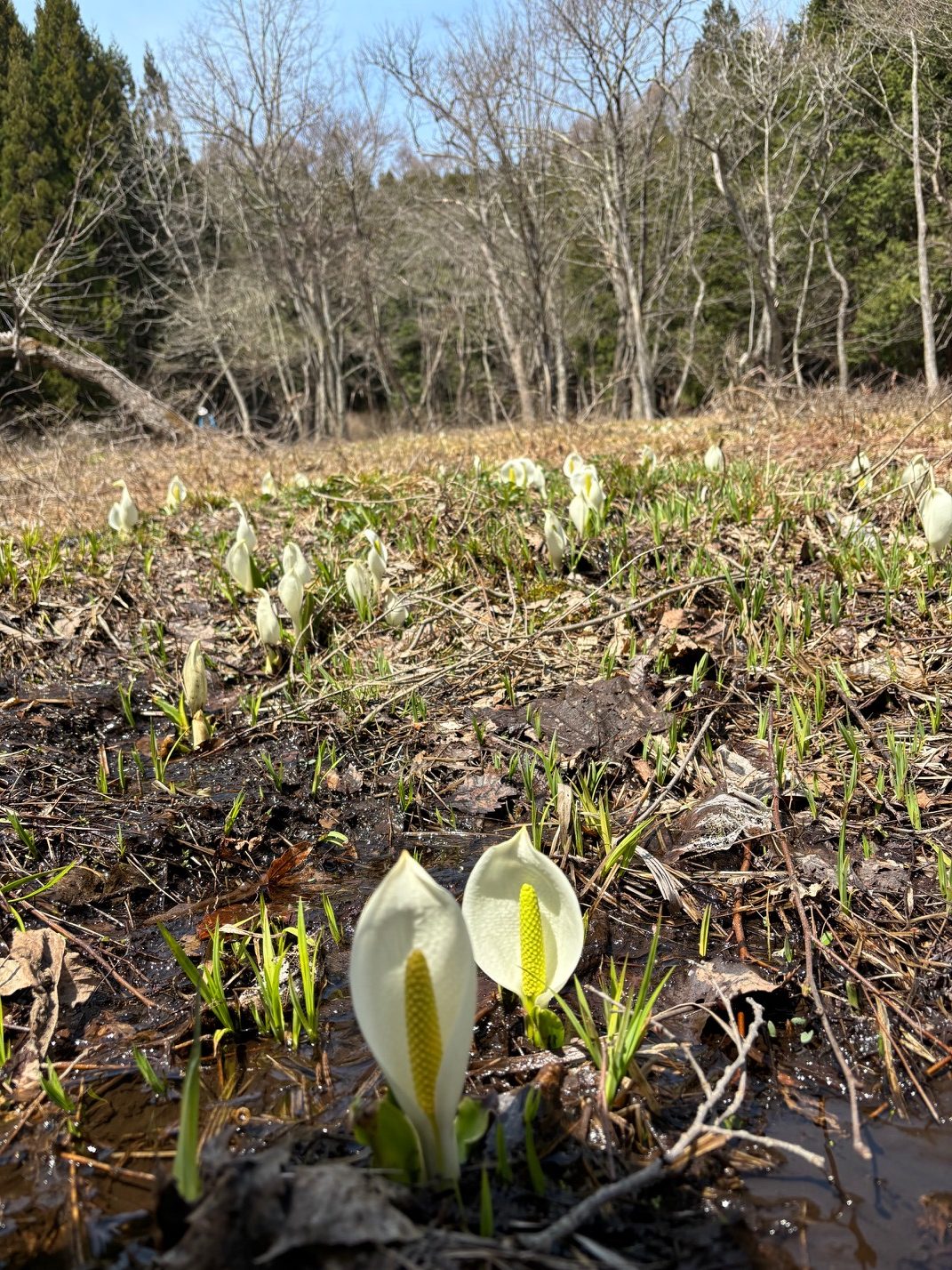 駐車場周辺、湿原の雪もなくなり、かわいいミズバショウが咲き始めています。湿原全体で現在3分咲き程度かと思います。今週は暖かい日が続く予報も出ていますので、随時更新させていただきます。