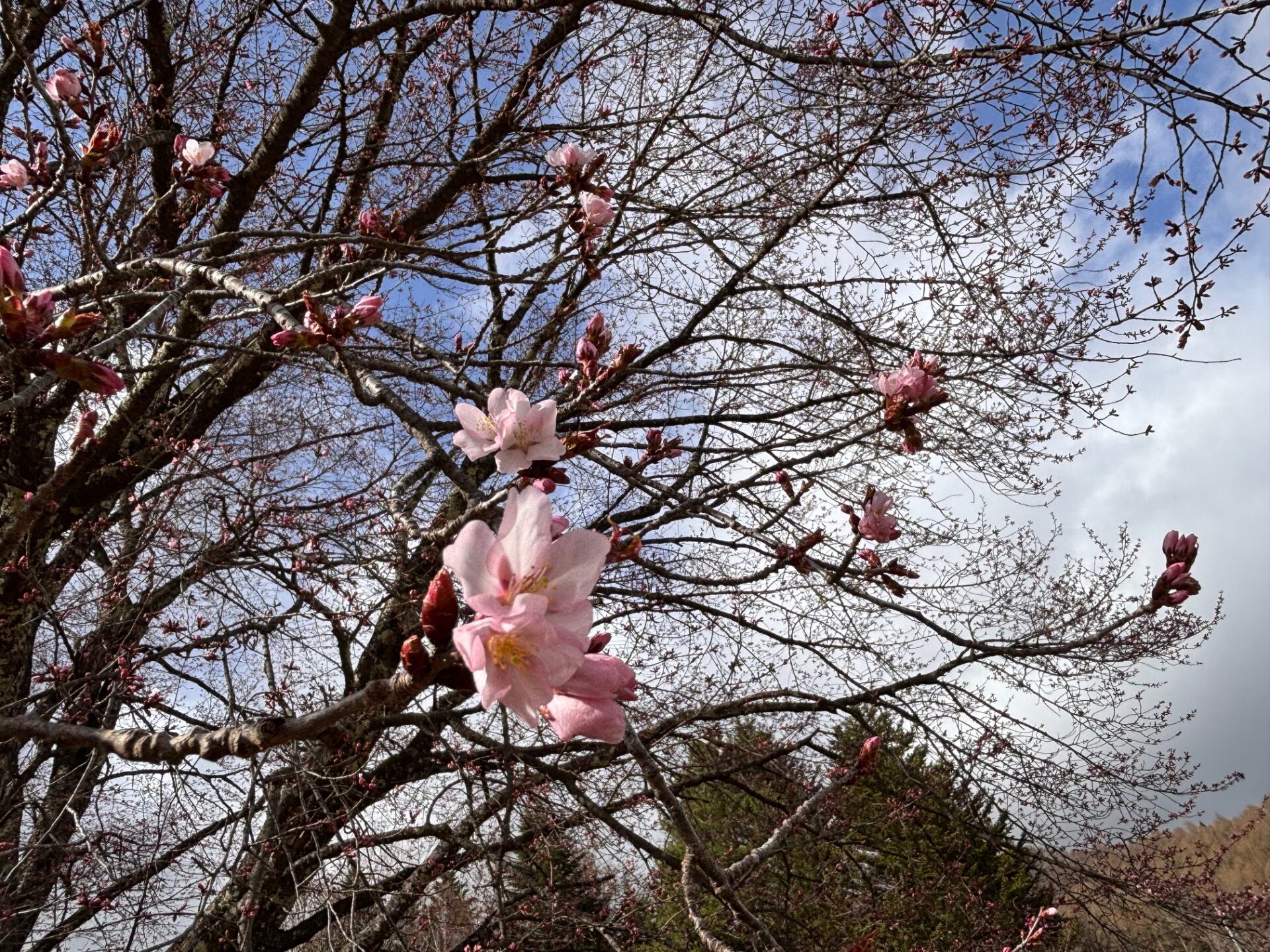 針山の天王桜は昨日より開花数が増え、数十輪開花していました。