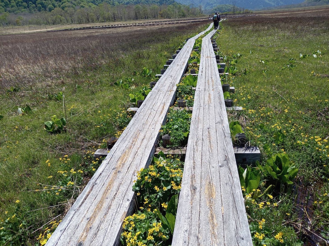 日に日にミズバショウは大きくなり、若干見頃は過ぎていますが、研究見本園では小さいミズバショウがご覧いただけます。