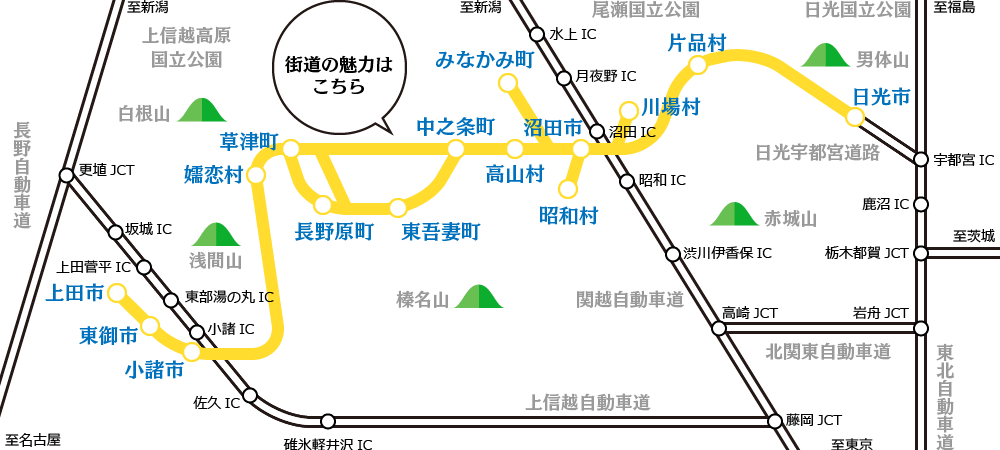 日本ロマンチック街道とは、日本において最もドイツ的景観を持つ街道として、長野県上田市より群馬県草津町、沼田市を経て栃木県日光市を結ぶ全長約320kmの街道です。