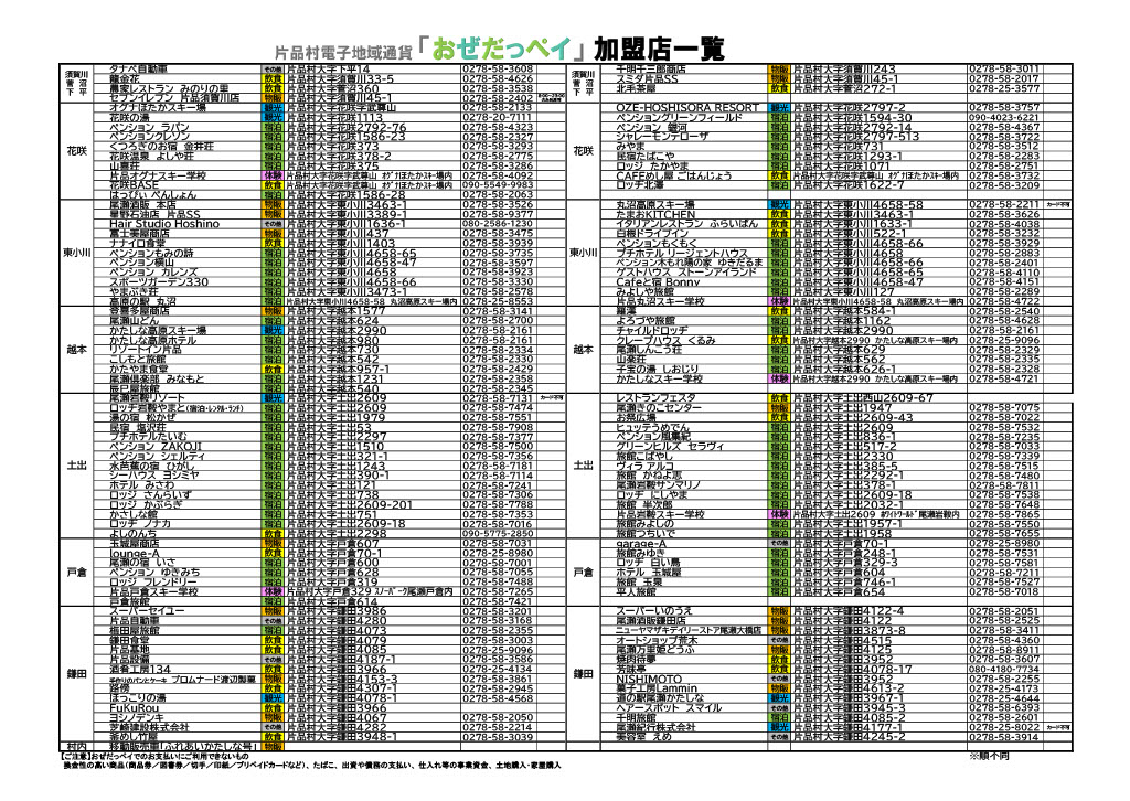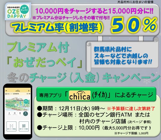 ●チャージ場所:全国のセブン銀行ATM または 村内のチャージ店舗(村内9店舗)