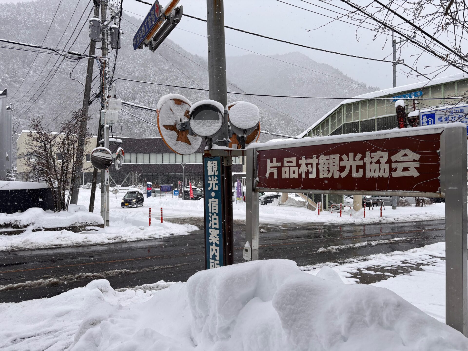 除雪作業はされており、片品村役場前の国道は融雪道路となっているため融けていますが、道路には雪がありますので、片品村へお越しの際には安全運転にてお越し下さい。