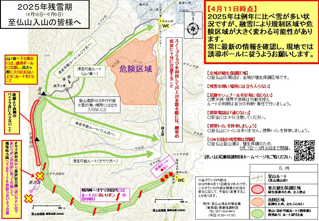 ※上記期間終了後、5月7日(水)~6月30日(月)まで至仏山登山道は植生保護のため閉鎖となります