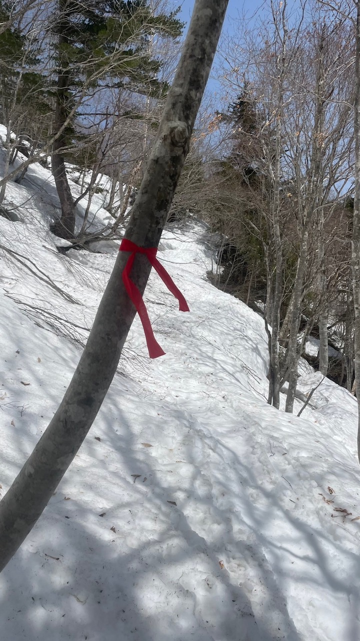 4月19日(土)に、片品村遭難対策救助隊の方々が大清水から尾瀬沼までの間、遭難防止のため赤いリボン付けを実施してくださいました。