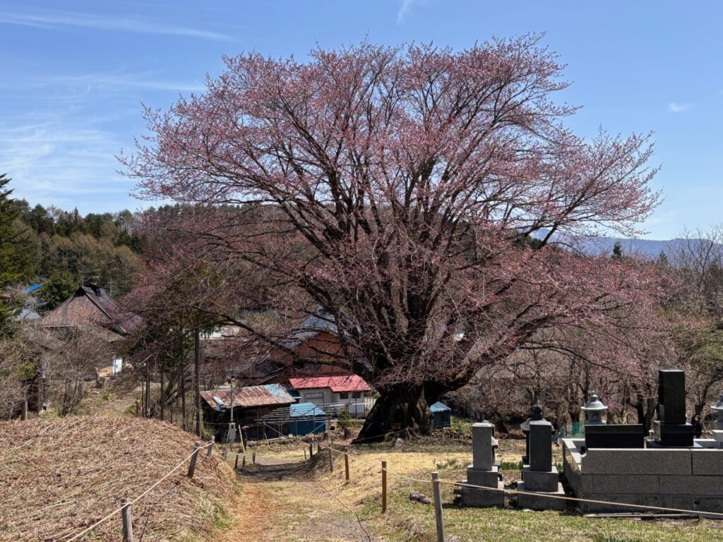 オキノ桜は、蕾が膨らみ、先端も色づき始めていますが、まだ開花はしていません。