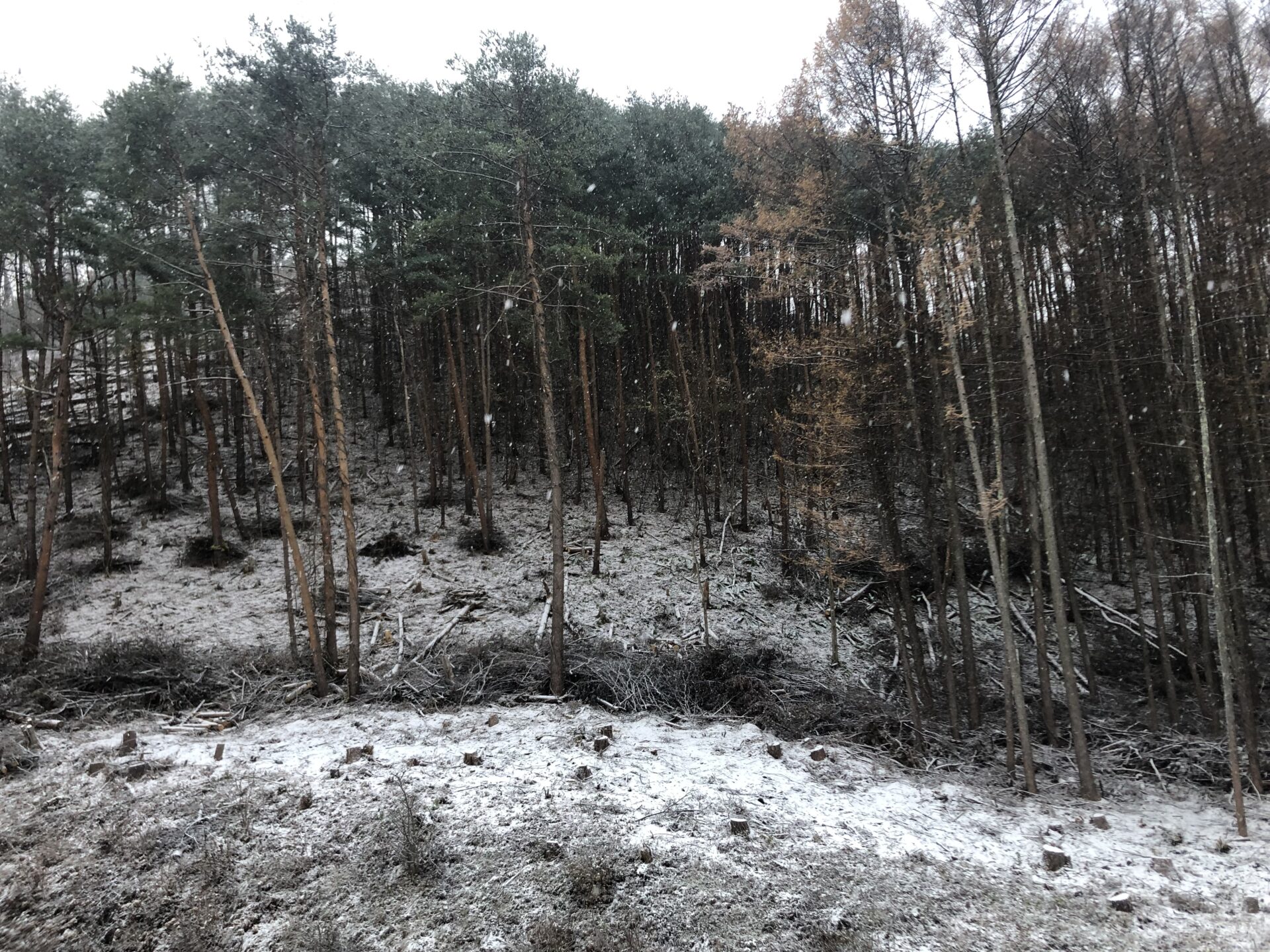 予報通り、片品村では朝から雪が降っています❄️