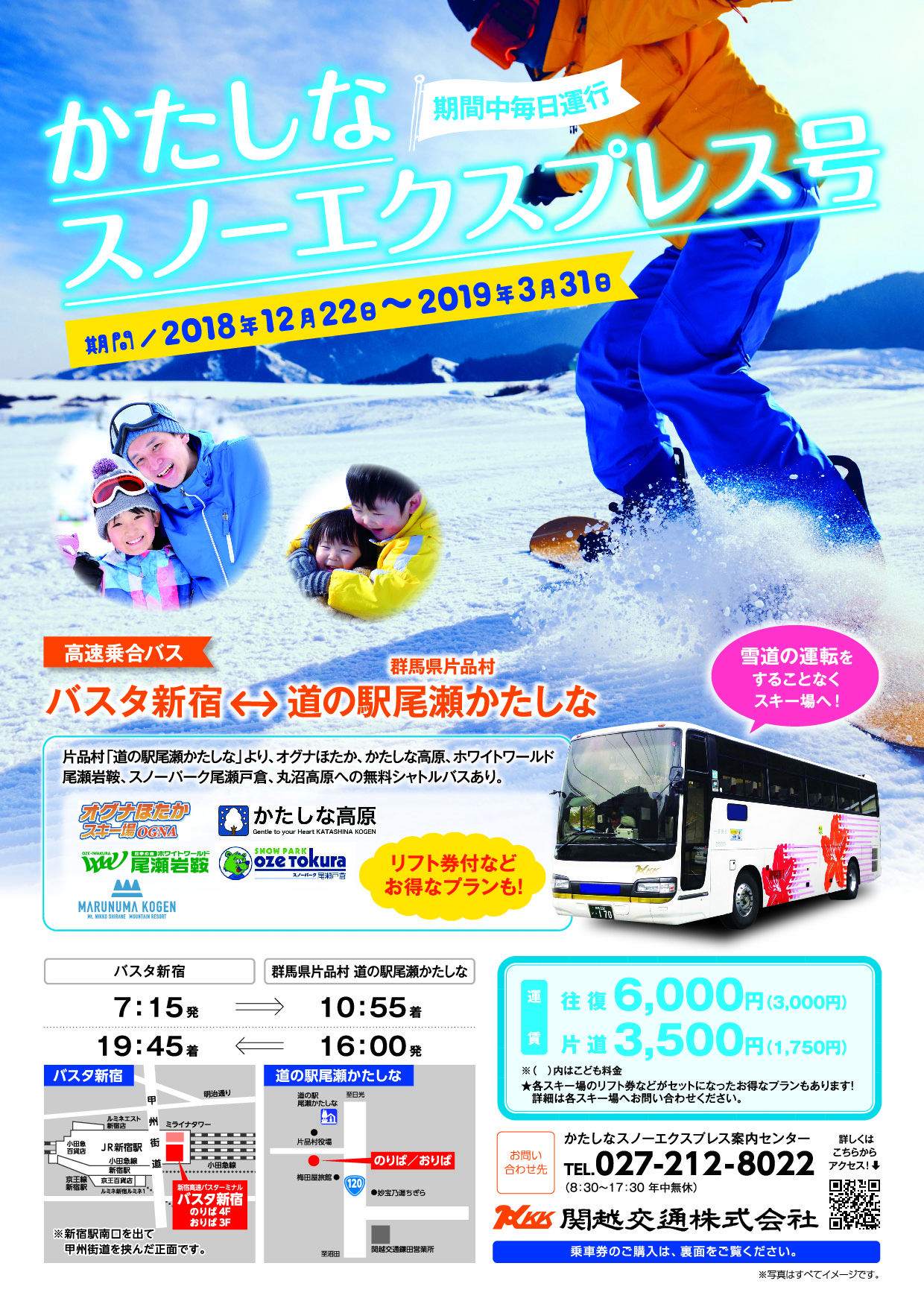 今年は『かたしなスノーエクスプレス号』 ”バスタ新宿” より期間中毎日運行します!