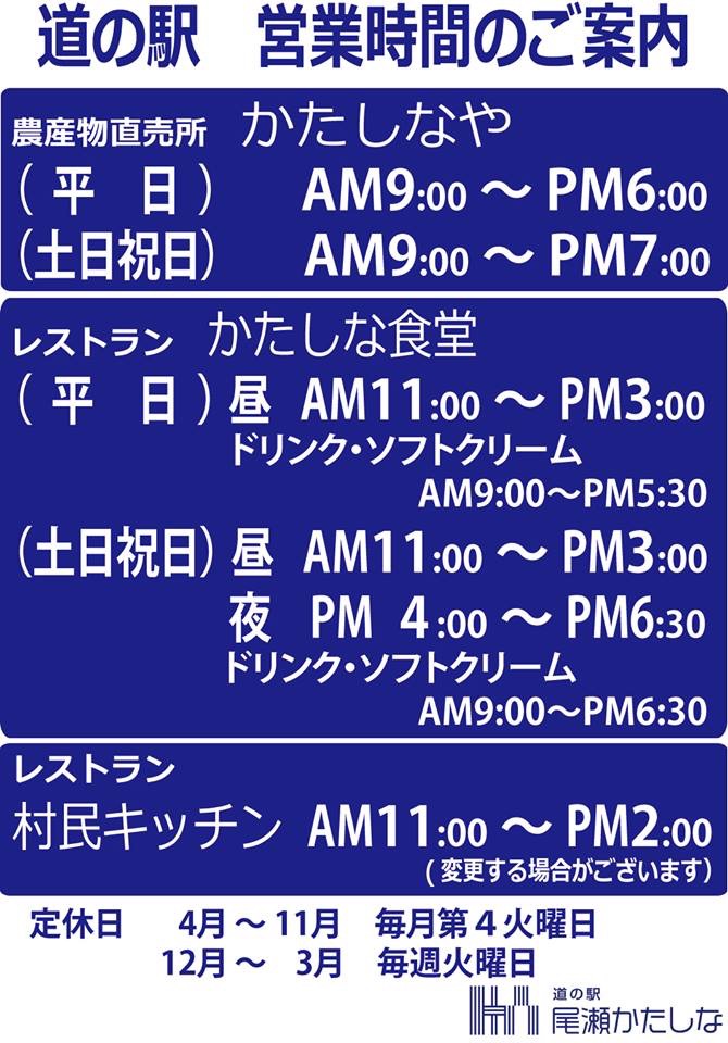 スキー場からお帰りの際には、ぜひ『道の駅尾瀬かたしな』へお立ち寄りください♬
