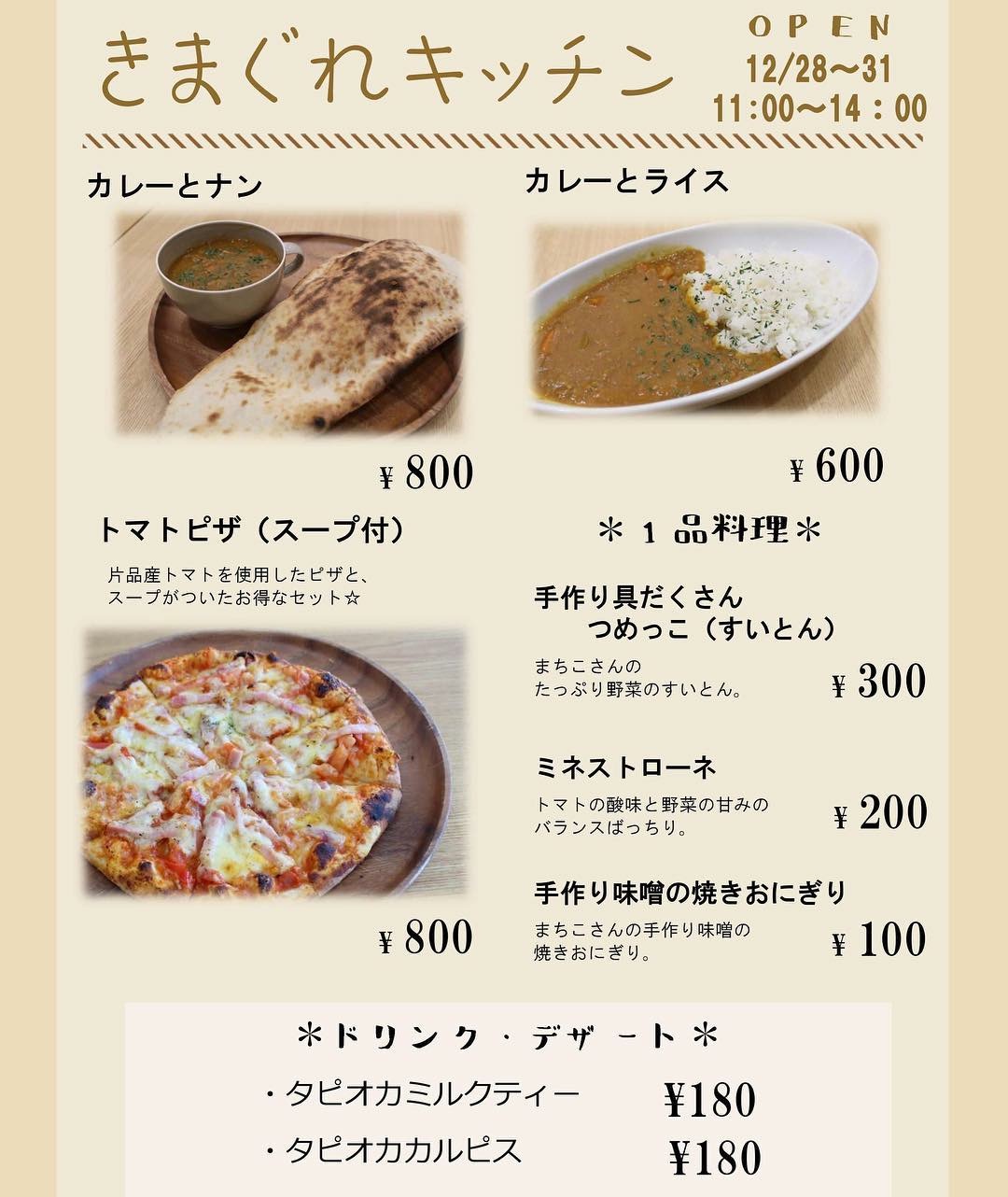 カレーや具だくさんの片品産トマトを使用した“トマトピザ”を始め、手作り具だくさんつめっこ(すいとん)や、タピオカドリンクなどご用意して、皆さまのお越しをお待ちしております♪