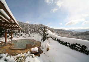 また、絶景露天風呂の冬のお楽しみと言えば・・・豪雪地帯ならではの“雪見風呂”