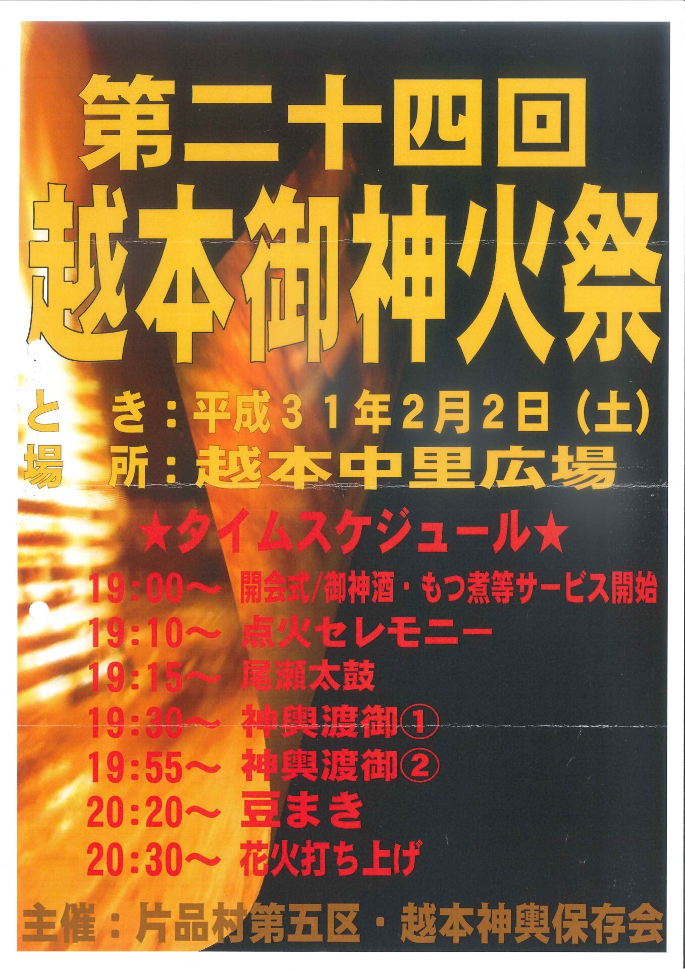平成31年2月2日(土)、片品村越本中里広場において『第24回越本御神火祭』が開催されます!