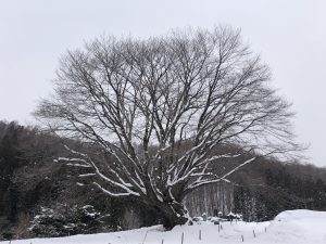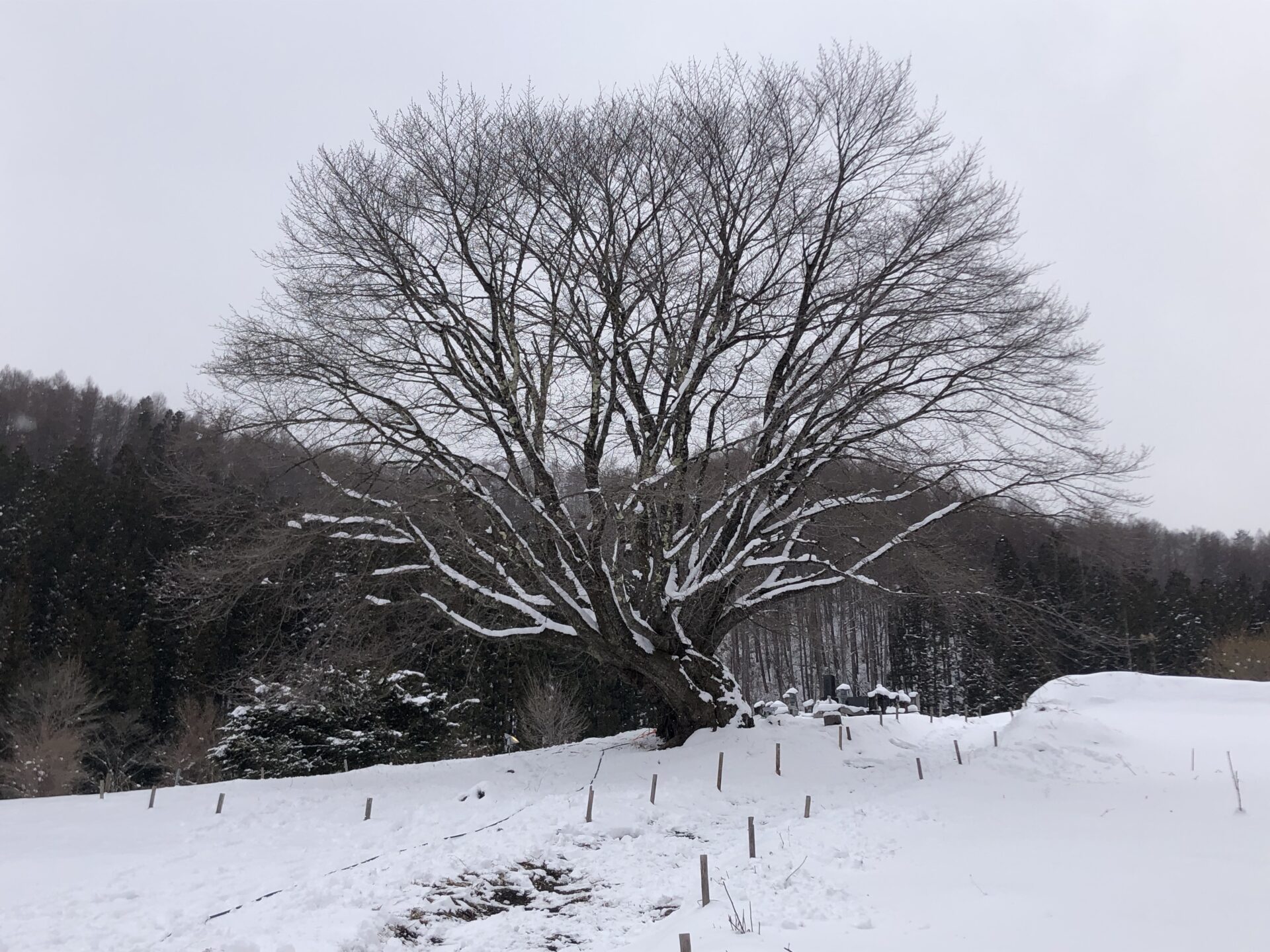 すっかり雪解けした天王桜でしたが、再び雪化粧の姿に**