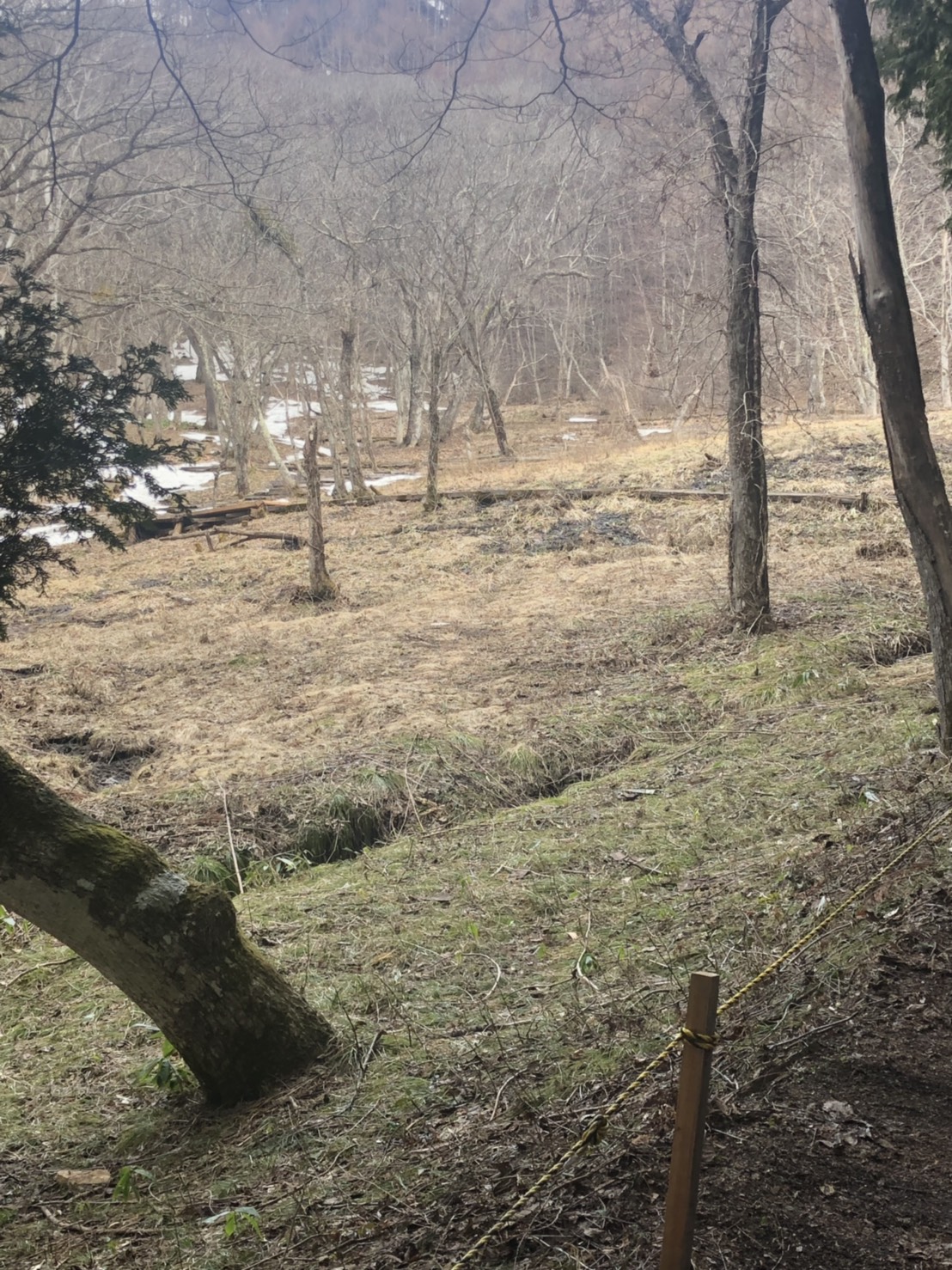 越本水芭蕉の森では、ここ数日の暖かさで雪も解け、日のあたりの良い一部分では、ミズバショウが少しずつ顔を出して始めていました。