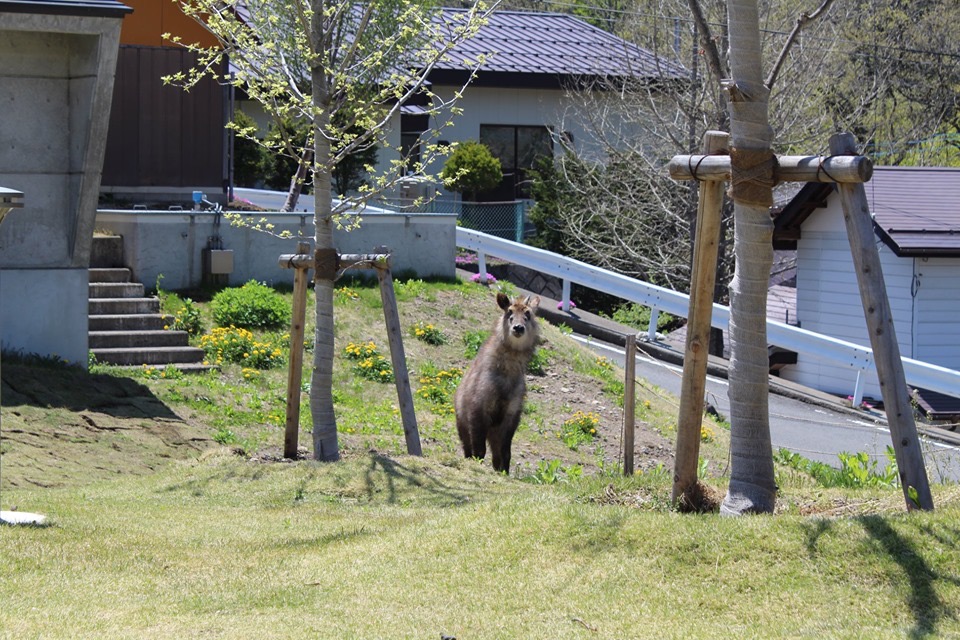 可愛く見えるカモシカですが、野生動物ですので、何をされるかわかりません。