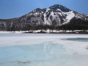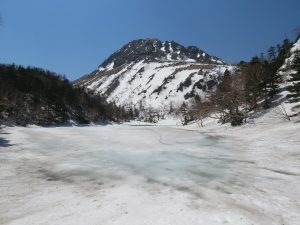 【結氷弥陀ヶ池と山頂北面】
