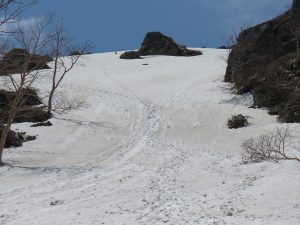 夏道外に垂直線的に足跡痕があり滑落に厳重注意です!