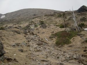 山頂でも暖かい日が多いですが、外気が一桁になる日もまだまだありますので危急時も踏まえて防寒着は携行して下さい。また、森林限界より山頂までは強風の日が多いので注意して下さい。