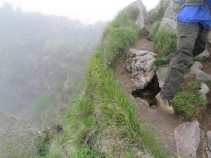 大雨が降ったのか、登山道が雨水で掘られ、山頂急崖には陥没の穴が散見で今後、穴が大きくなると、踏み抜いて転落する危険性もあり要注意です!