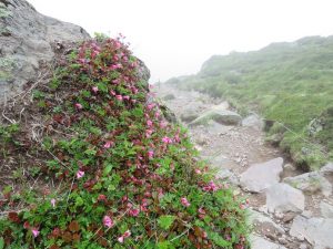 残雪のためイワカガミがまだ満開でハクサンシャクナゲがまだ咲いていません。