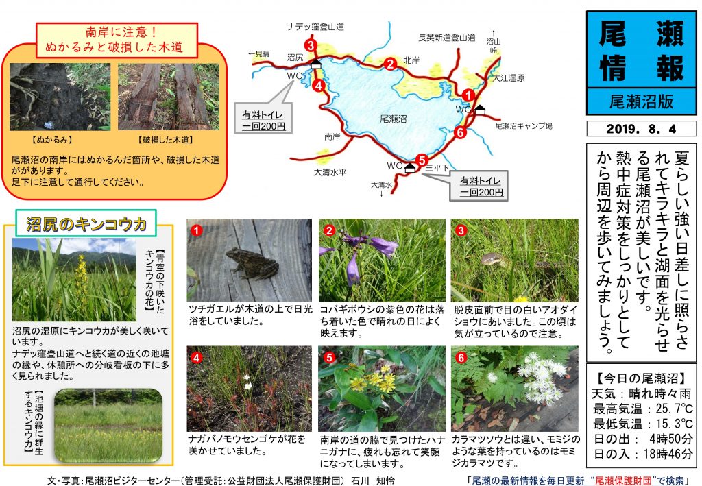 尾瀬沼の南岸にはぬかるんだ箇所や、破損した木道があります。足下に注意して通行してください!