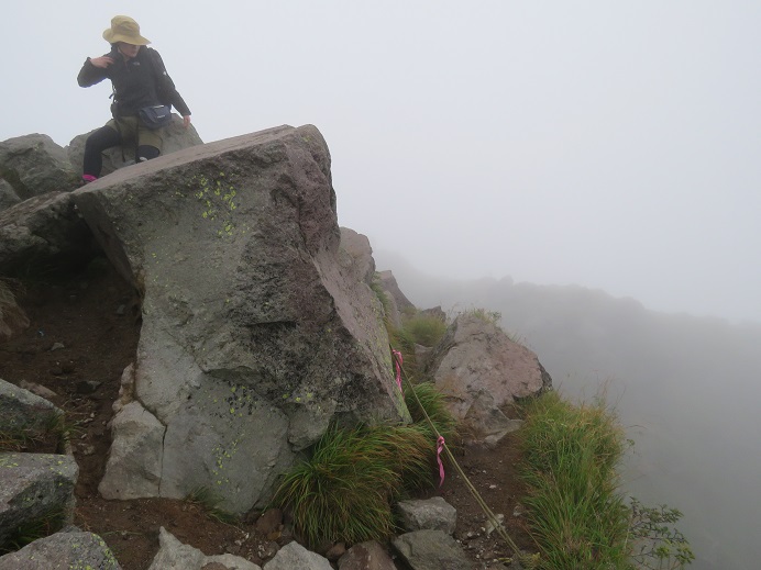 【山頂弥陀ヶ池間急斜面の緩んだ登山道】