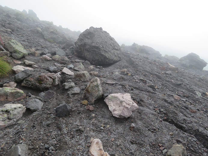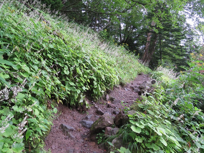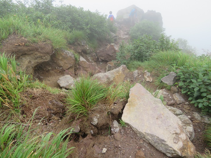 森林限界のザレ場や急斜面では流水で登山道が緩んでいます💦