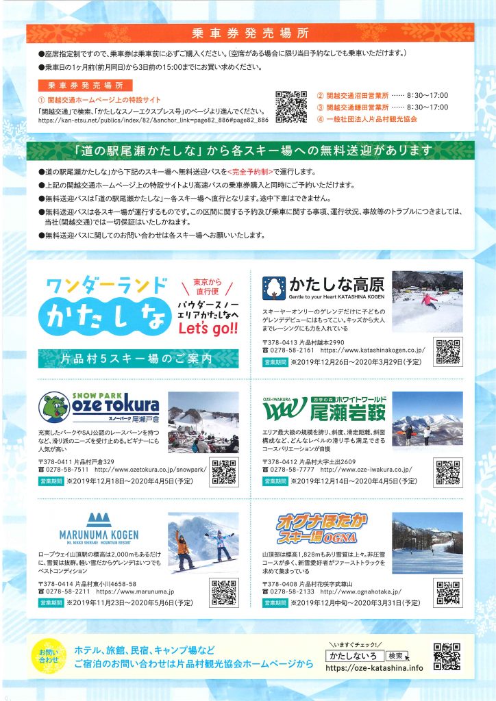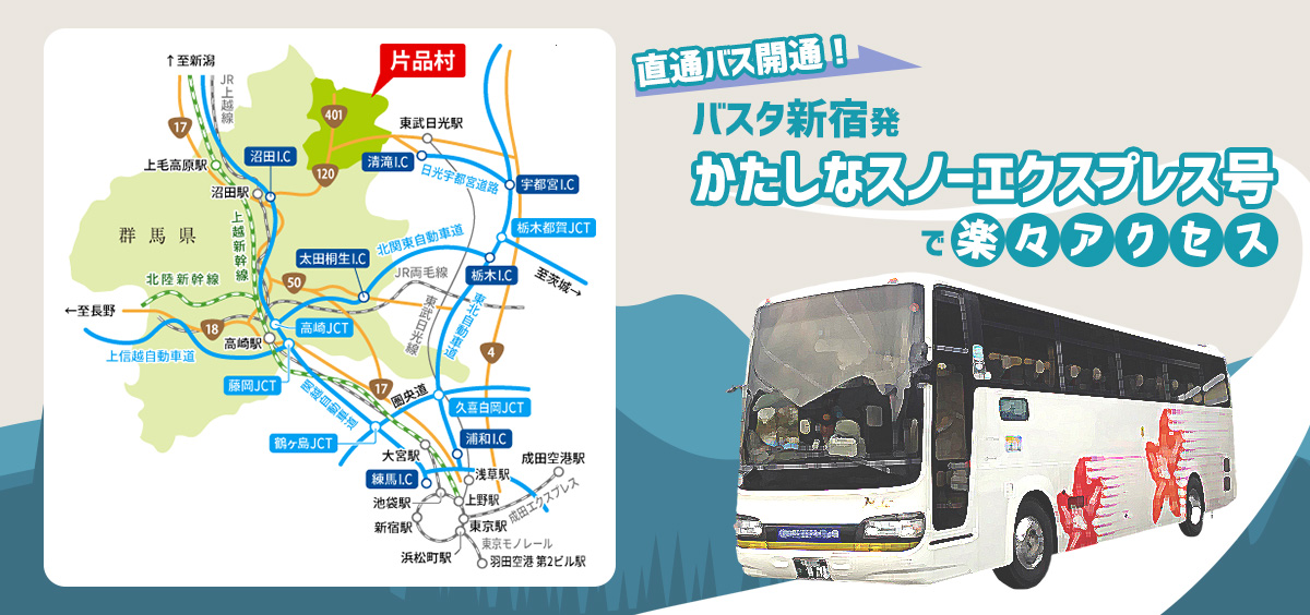 片品村「道の駅尾瀬かたしな」より、オグナほたか、かたしな高原、ホワイトワールド尾瀬岩鞍、スノーパーク尾瀬戸倉、丸沼高原への無料シャトルバスあり🚌(完全予約制)