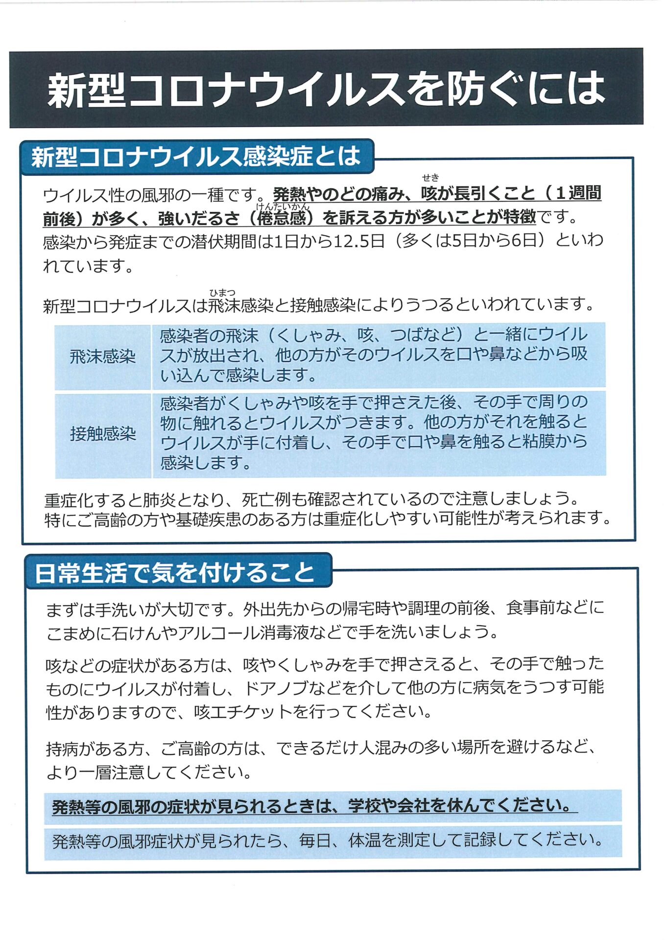 新型コロナウイルス感染症対策へのご協力をお願いします