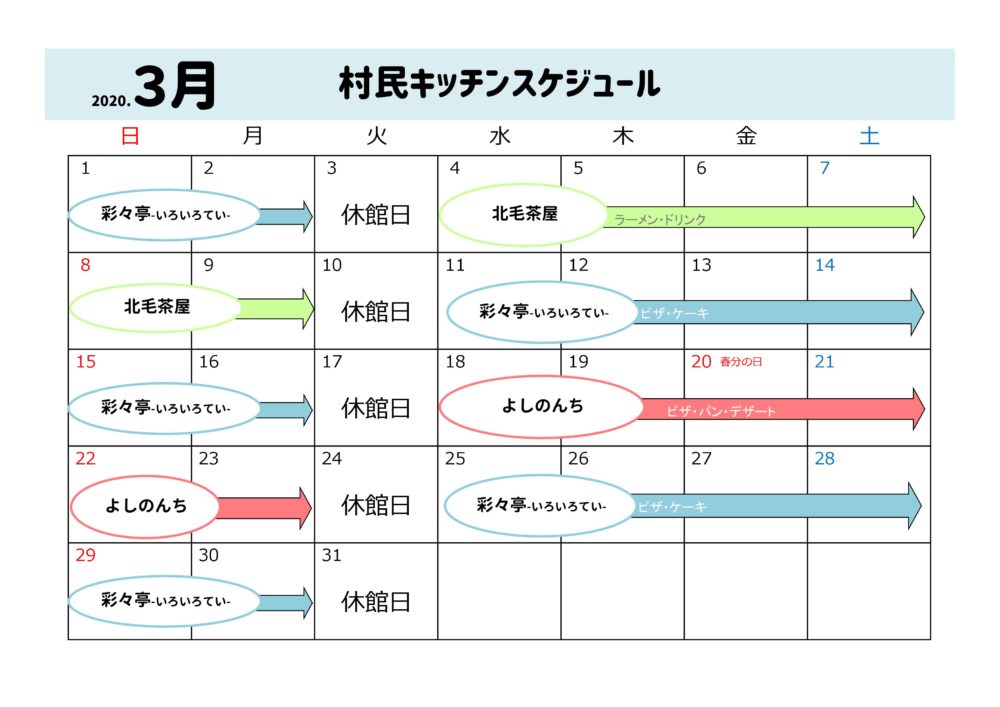 2020.3 村民キッチンスケジュール😊🎵