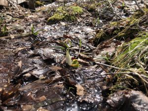 越本水芭蕉の森のミズバショウは、小さな蕾でしたが、1~2株小さな白い包が見られました✨