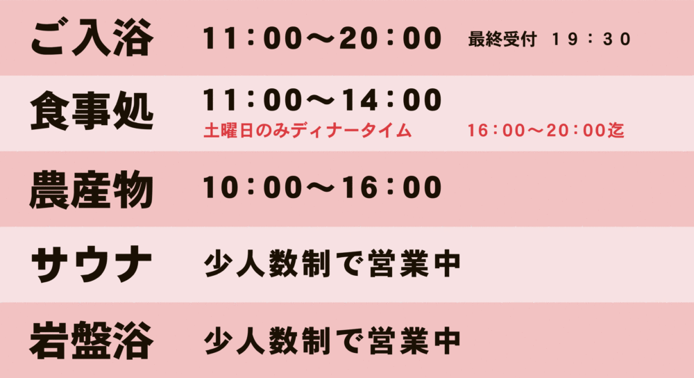 ・温泉入浴     11:00~20:00(最終受付19:30)