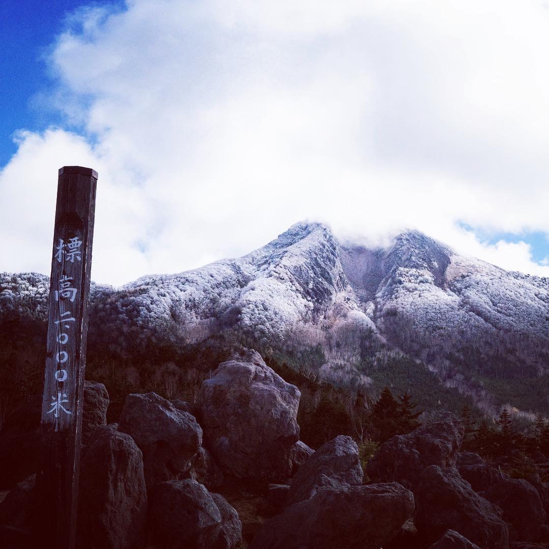 今朝、初冠雪?霧氷?のような微妙な感じではありますが山頂が白くなっていました。