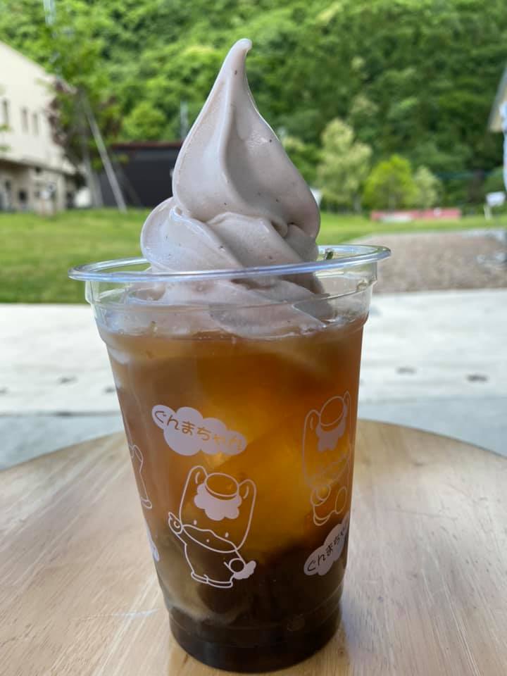 少し苦みあるストレートティーに、甘くて濃厚な片品産花豆ソフトクリームとモッチモチのタピオカのコラボは絶品です😉🎶