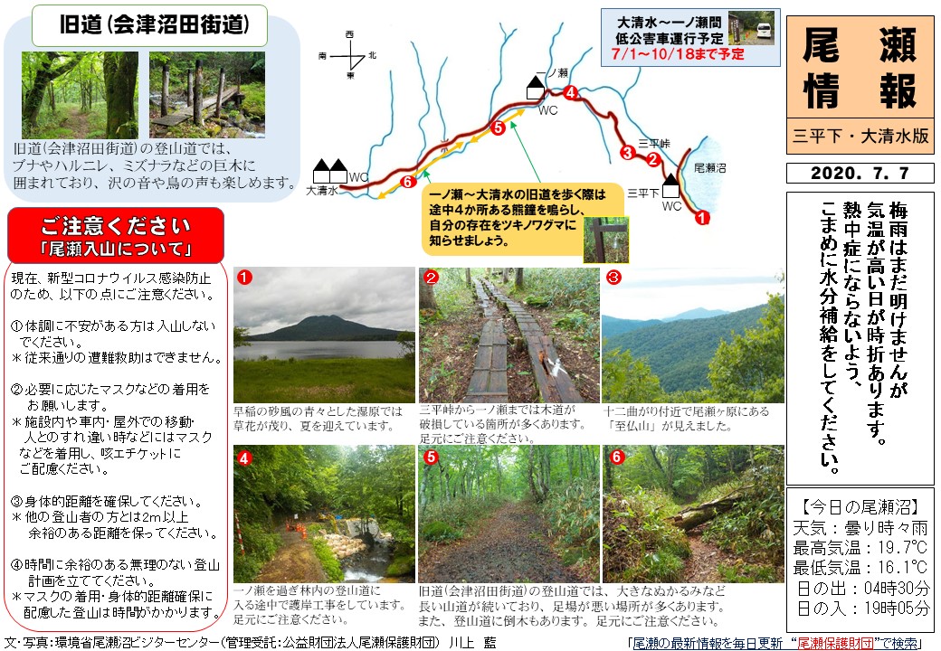旧道(会津沼田街道)の登山道では、大きなぬかるみなど長い山道が続いており、足場が悪い場所が多くあります。また、登山道に倒木もあります。こちらも足元にご注意ください。