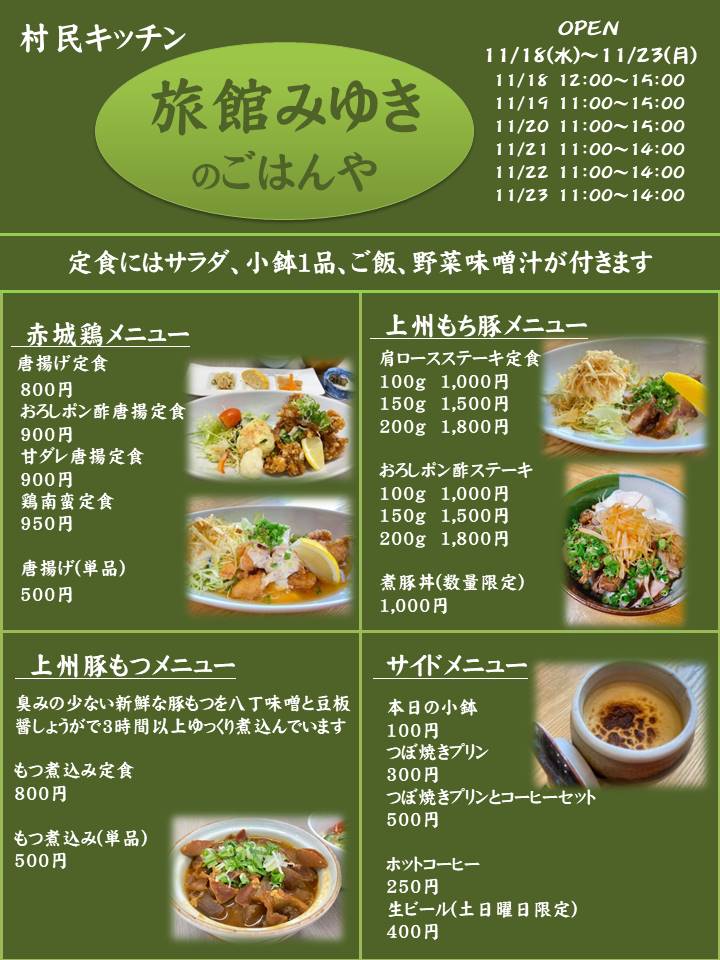 本日11月18日(水)~11月23日(月・祝)まで『旅館みゆきのごはんや』始まりました😋🙌