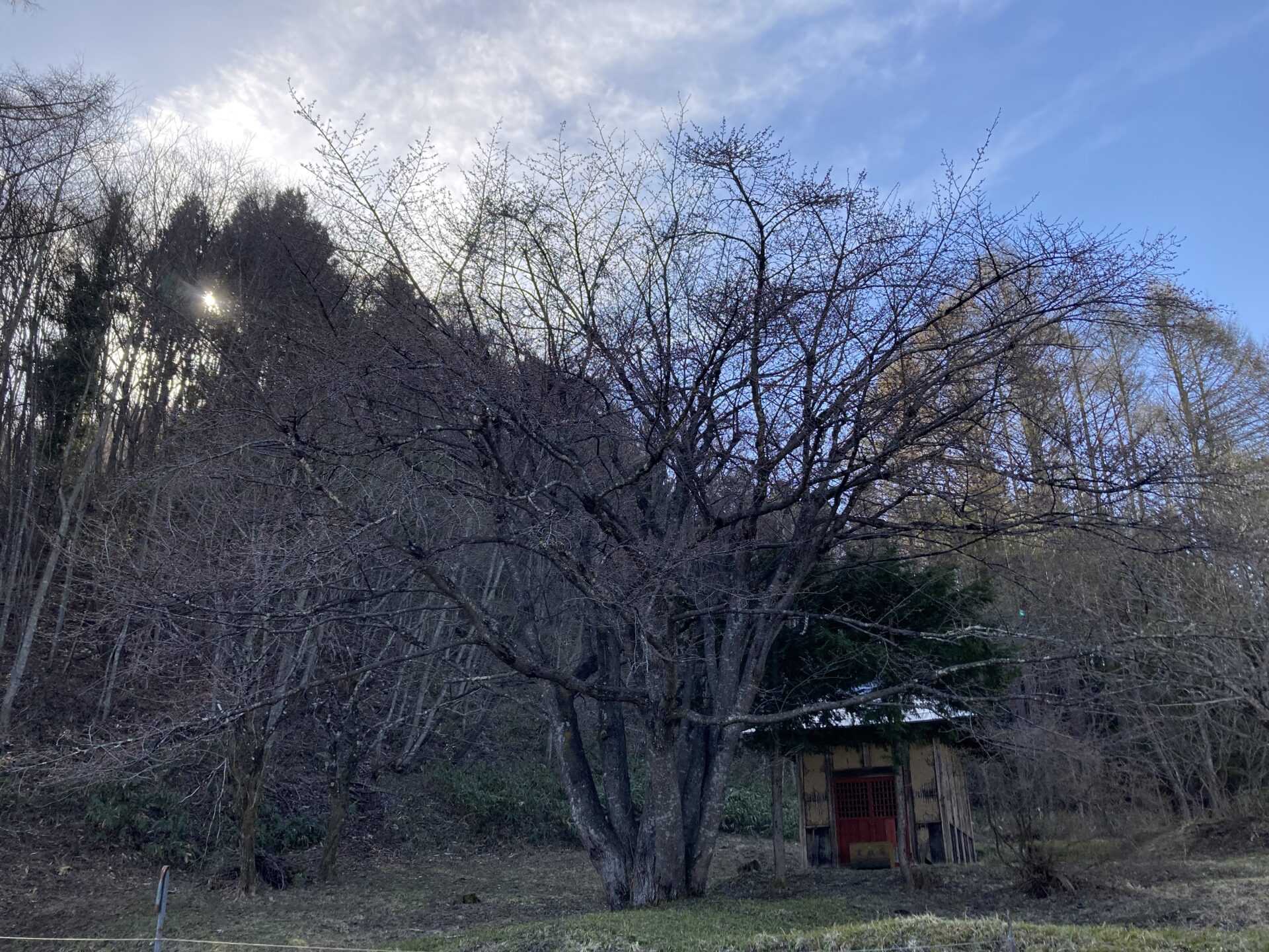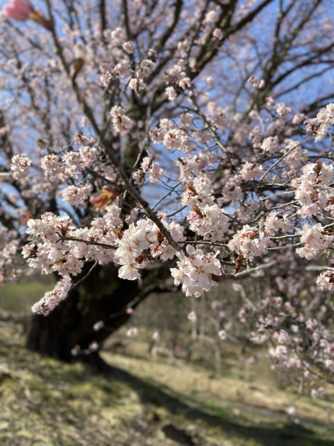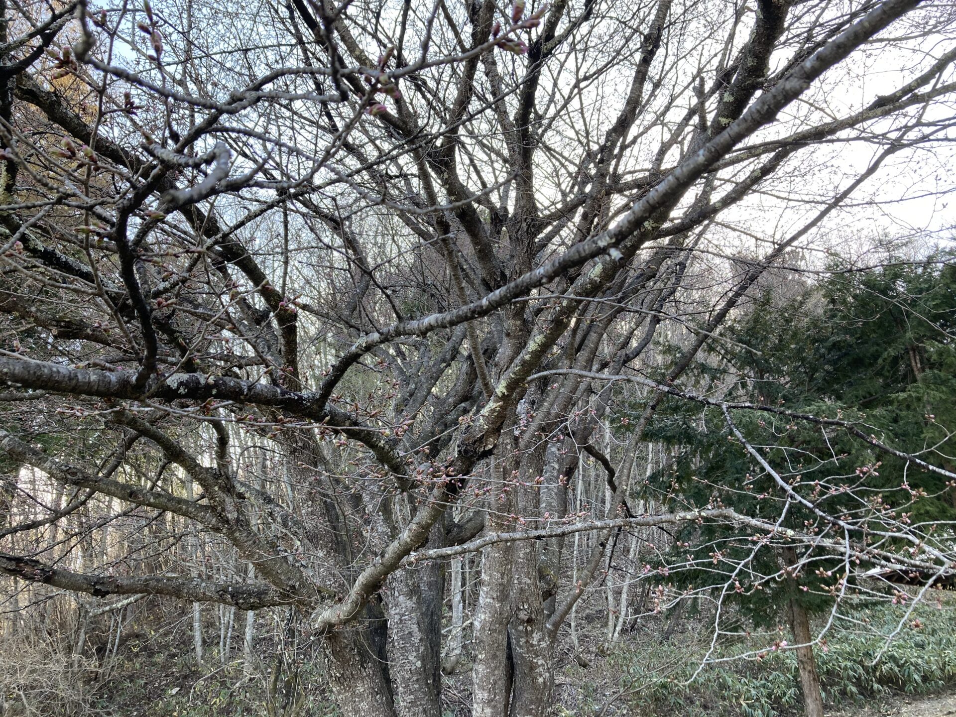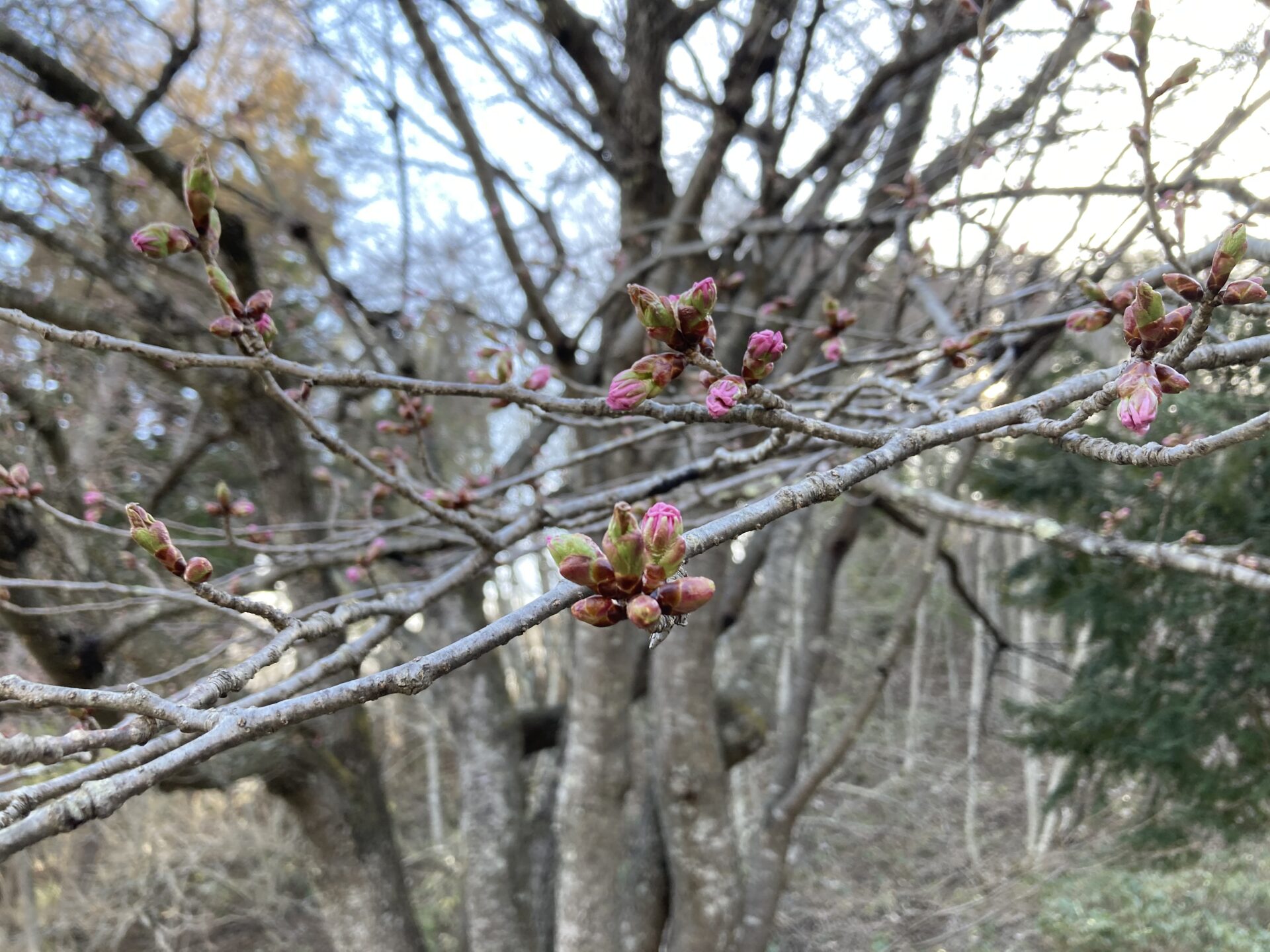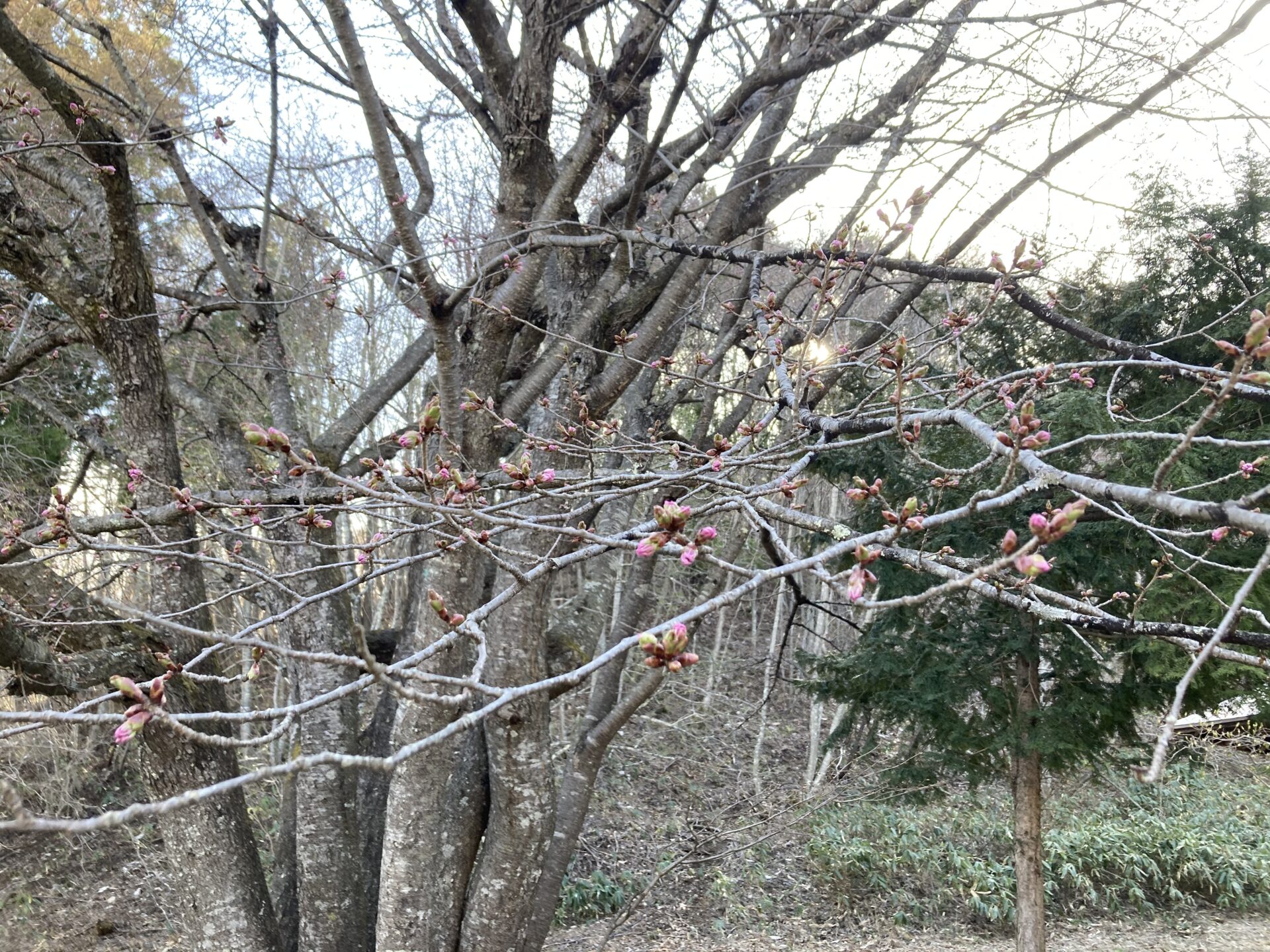 天王桜近くにあるオキノ桜ですが、少しずつ蕾が膨らみ、色づきはじめていました🌸