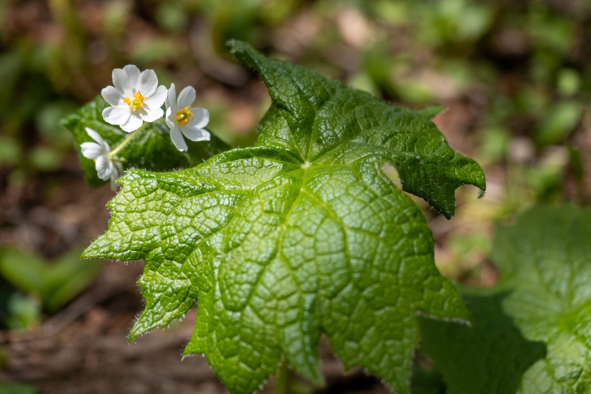ムラサキヤシオツツジ、オオカメノキ、ミネカエデ、ハウチワカエデ、トチノキなどの樹木のお花を楽しみながら歩くことができます。