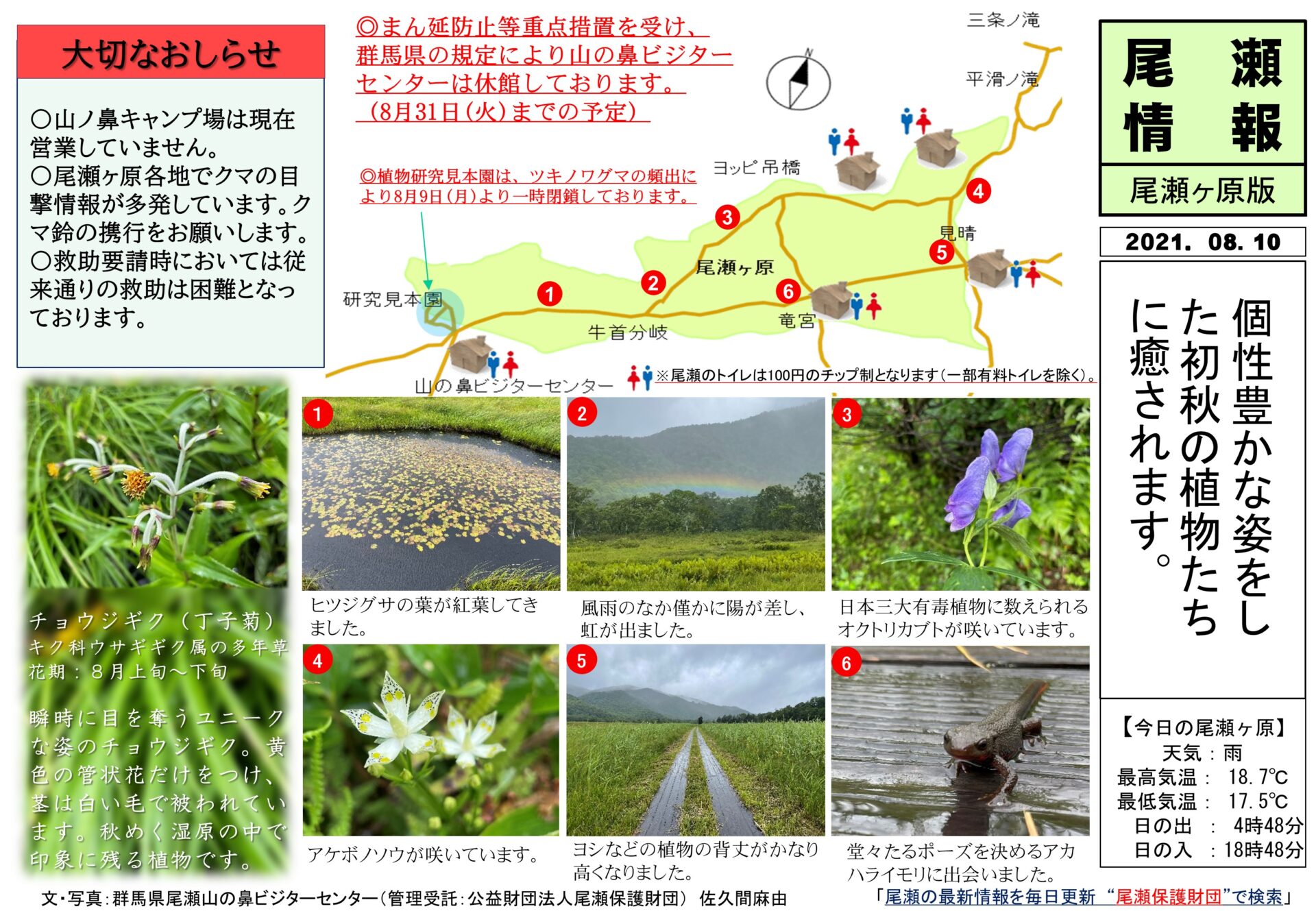 ◎まん延防止等重点措置を受け、群馬県の規定により山の鼻ビジターセンターは休館しております。
