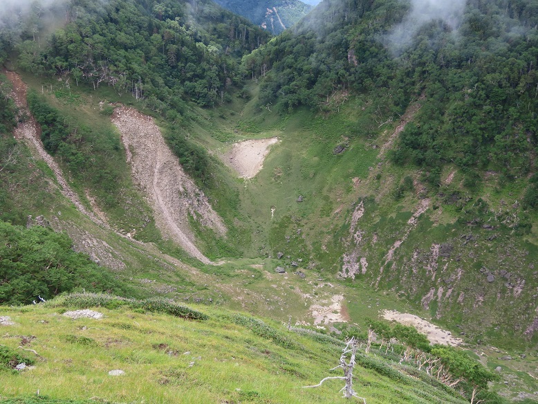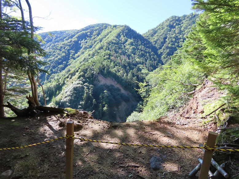 【菅沼道シャクナゲ平休憩地脇の崩落急崖】