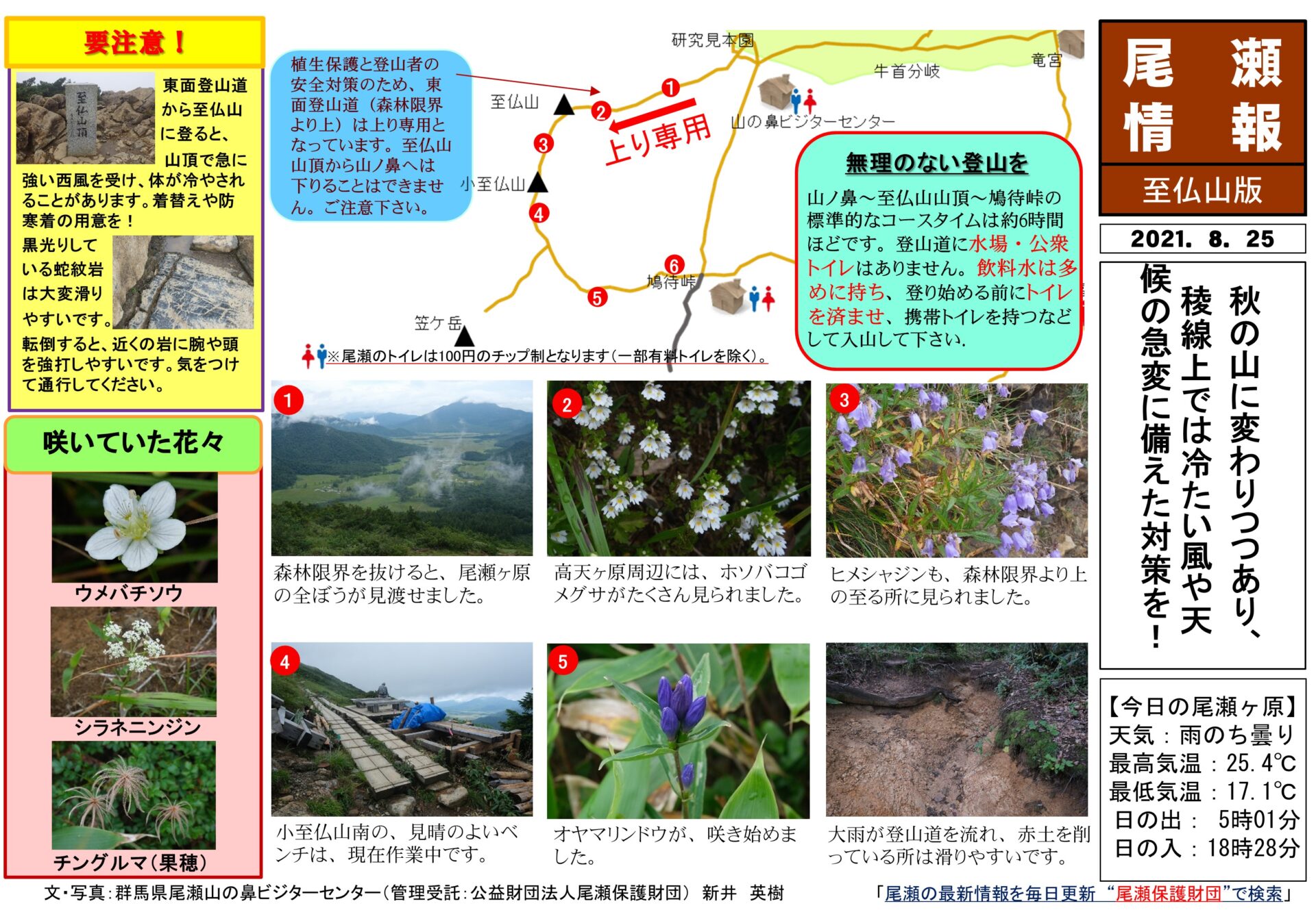 東面登山道から至仏山に登ると、山頂で急に強い西風を受け、体が冷やされる事があります。