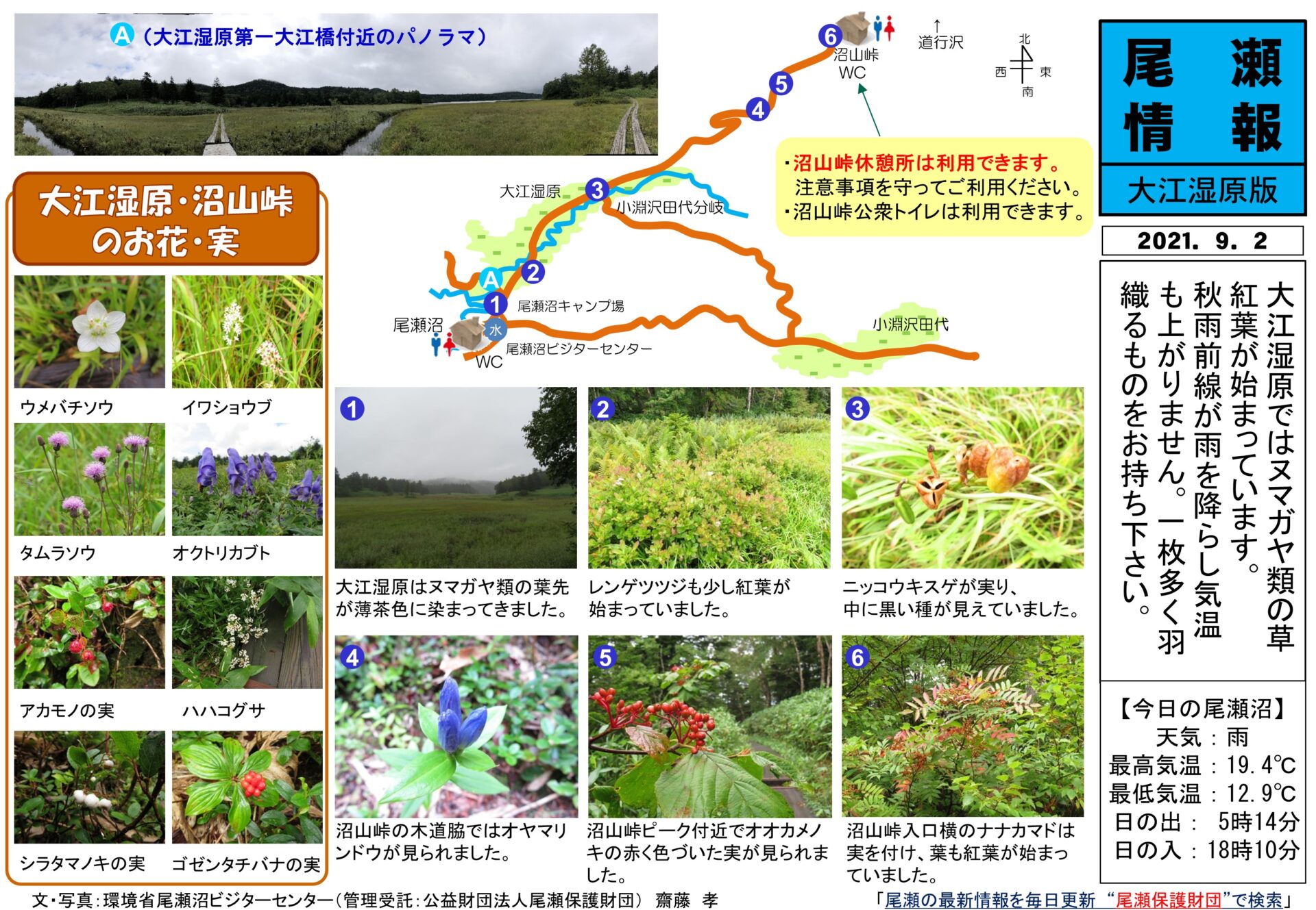 大江湿原は、ヌマガヤ類の葉先が薄茶色に染まってきました。レンゲツツジも少し紅葉が始まっています。