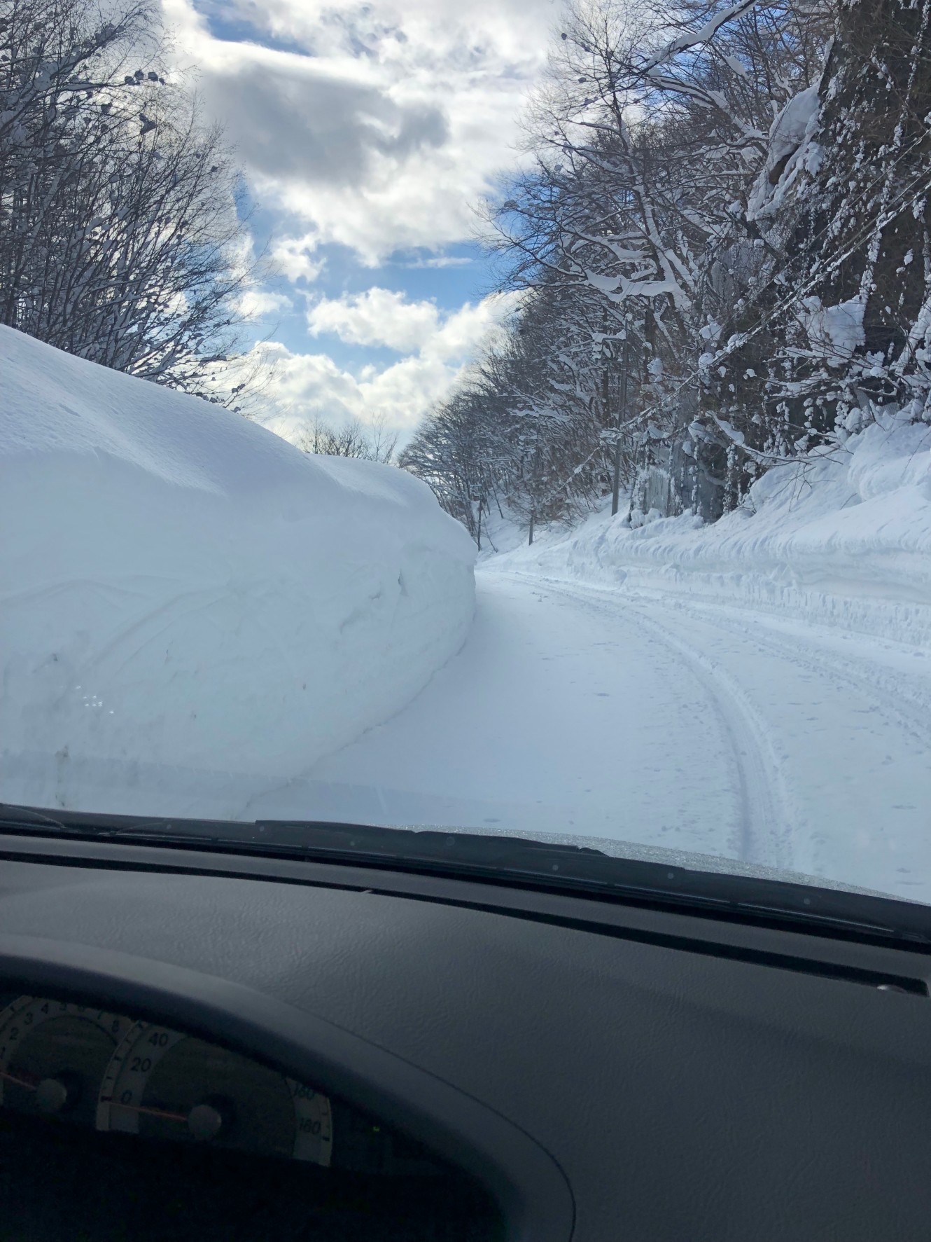 国道から一歩入ると、ところどころで雪の壁が出来上がっています。